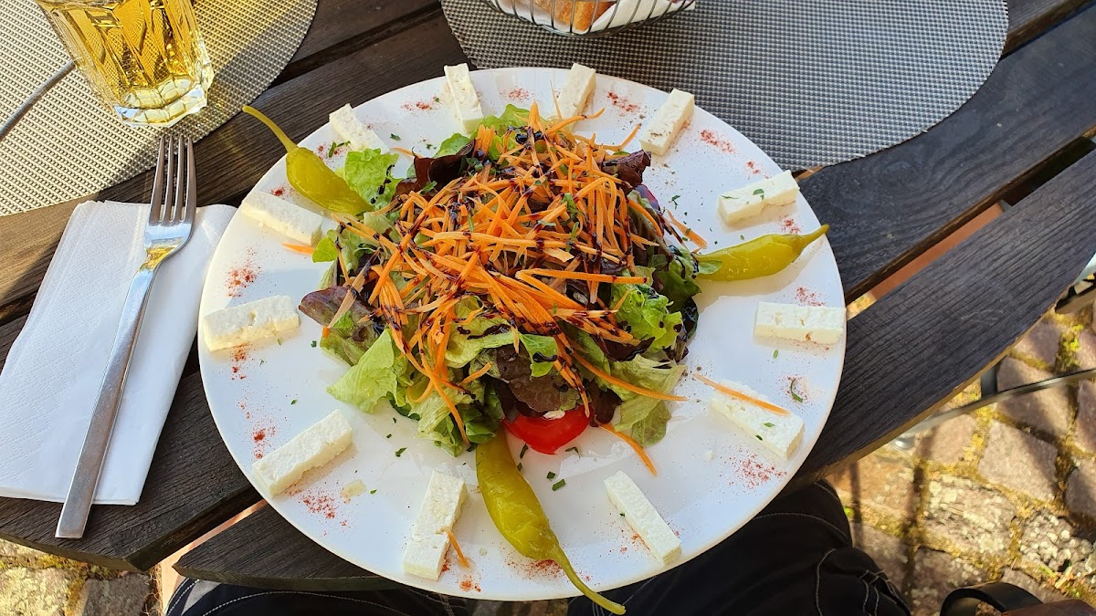 Kann ich wärmstens empfehlen. Eignet sich auch für kleinere Gruppen. Die Atmosphäre ist zwanglos und entspannt. Im Sommer kann man im schönen Außenbereich unter Sonnenschirmen Platz nehmen. Im Winter lädt der Innenbereich zum Speisen ein. Die Karte ist sehr vielfältig und Preis-Leistung ist in Ordnung.